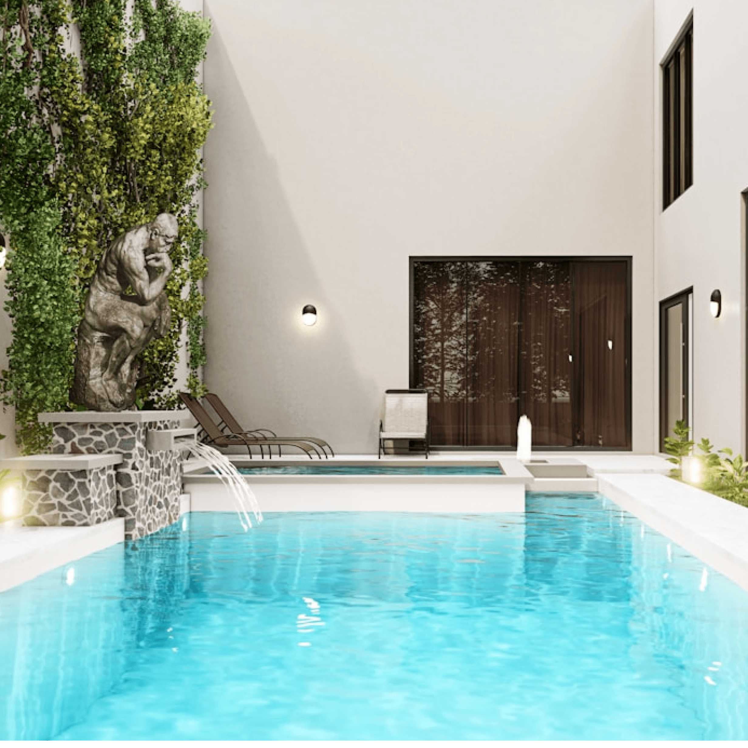 Moderne Oberflächen, 3D-Strukturen und breit gefächerte Farbwelten für hochwertige, individuelle Pooloptik.