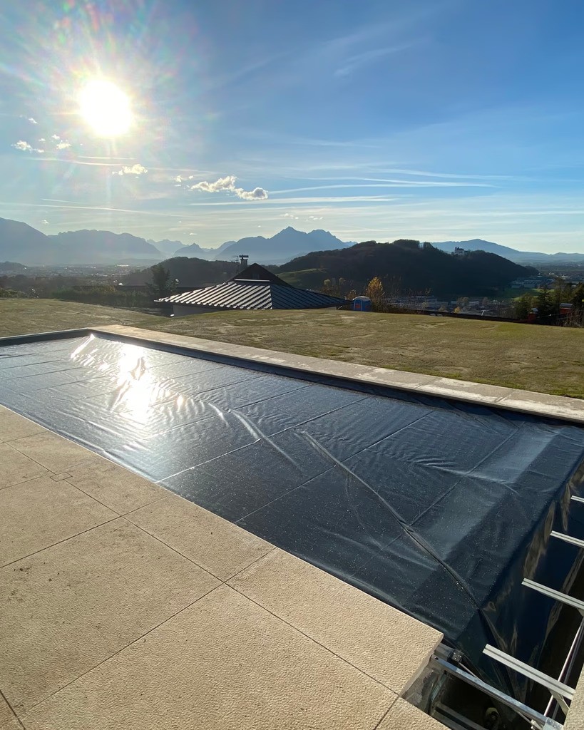 Planenabdeckungen schützen den Pool zuverlässig vor Schmutz, reduzieren Verdunstung und sorgen für eine stabile Wasserqualität.